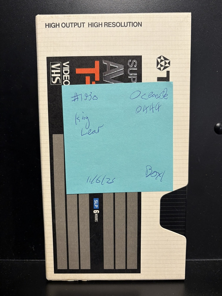 Oceanside - Tape 0444 - #1930 - King Lear (Olivier), Absence of Malice (Partial)